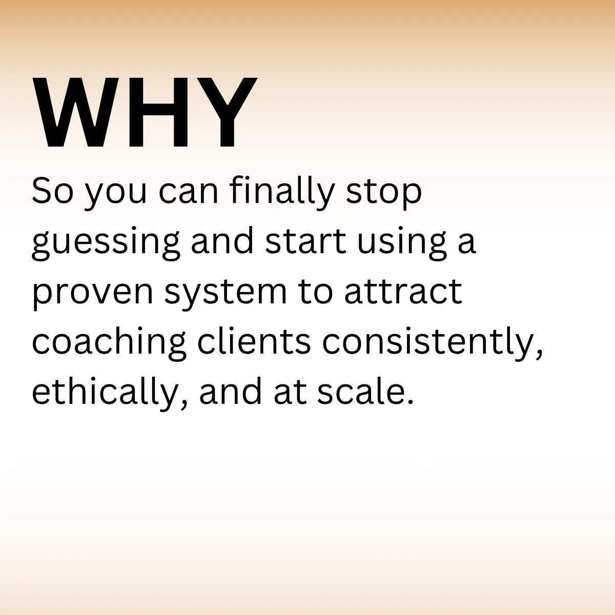 IF YOU KNOW YOU'RE GOOD — BUT YOUR BANK ACCOUNT DOESN'T REFLECT IT. You're a skilled coach. Your existing clients get real results. But somewhere between the work you do and the clients you need, there's a gap you can't close. You're done pretending that gap doesn't exist. This was absolutely built for you.